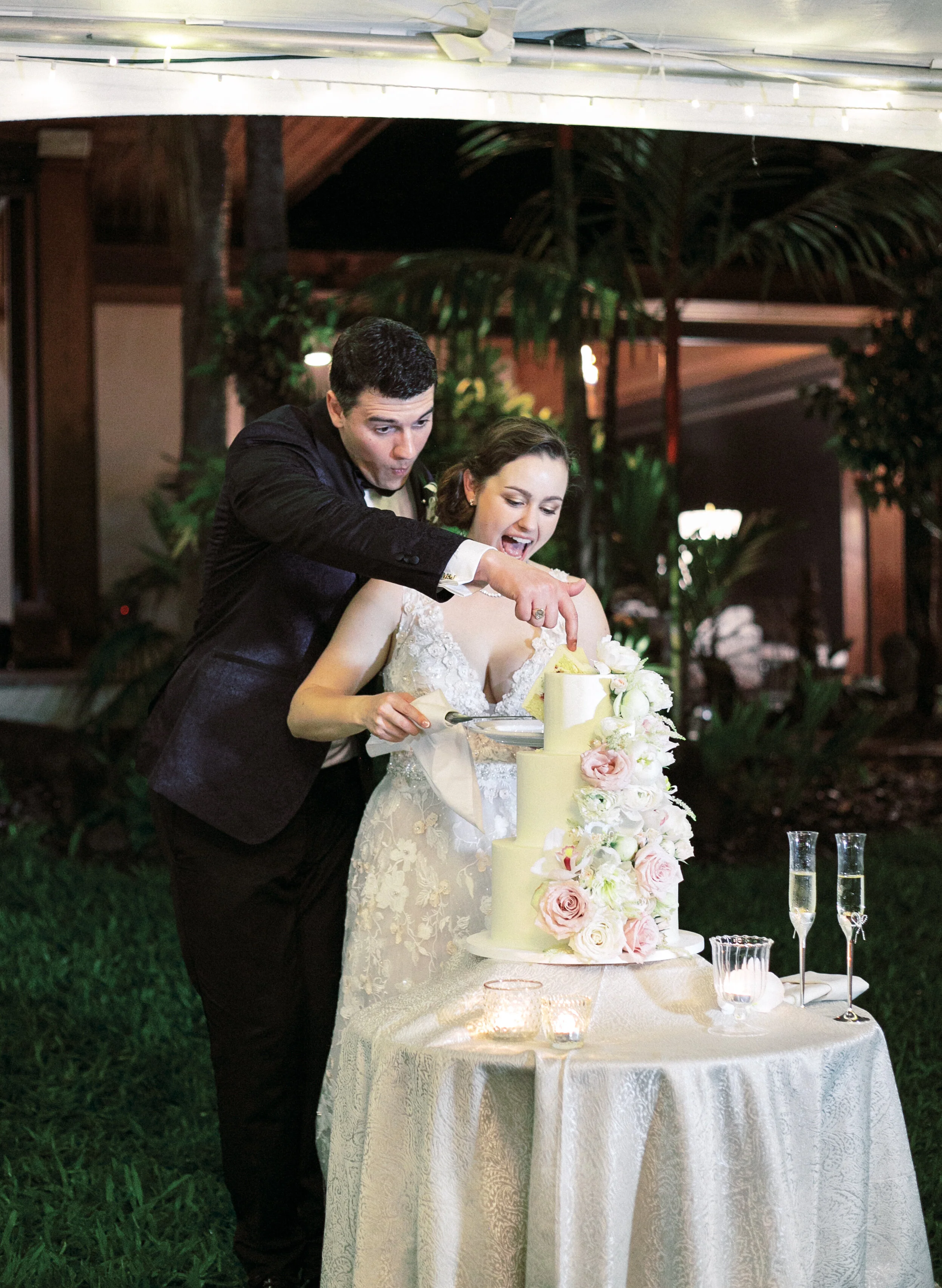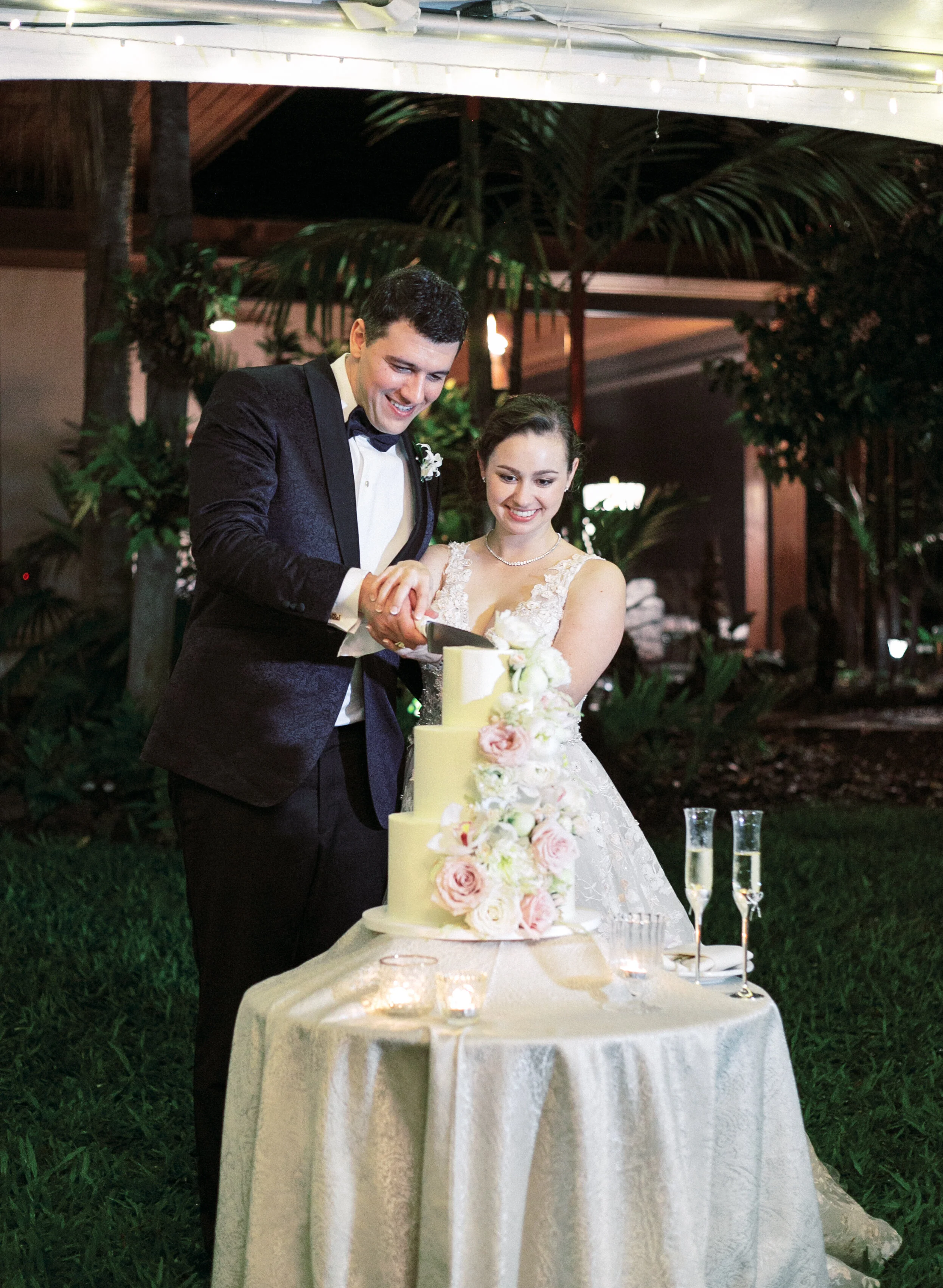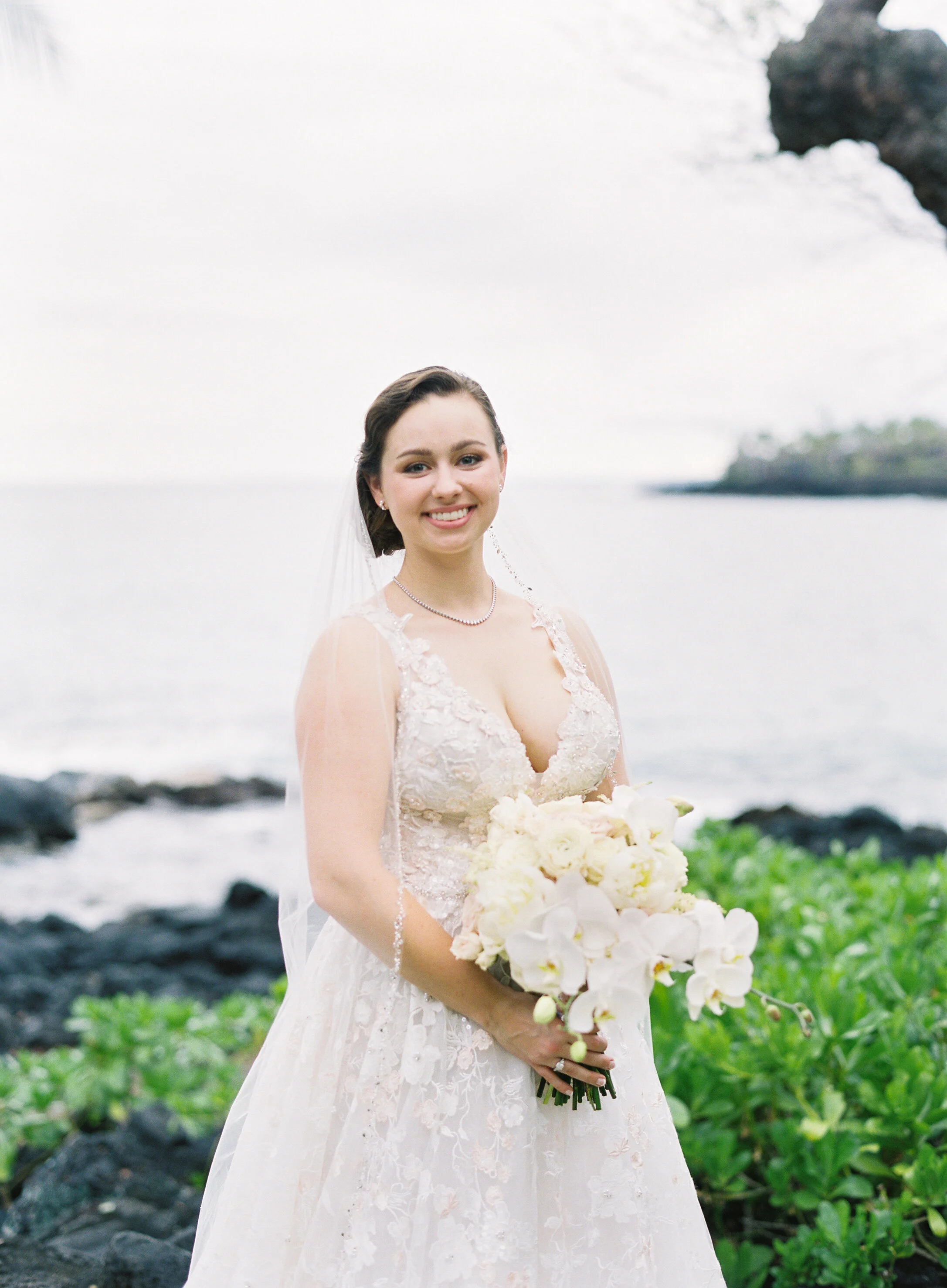 Vendors: Design & Coordination: Bliss In Bloom I Photography: Christine Clark Photography I Videography: Kahena Cinema I Venue: Hokukano Bay House I Rentals & Decor: Big Island Tents, Latavola Linen I Entertainment: Magic Strings, Olowalu Entertainment, Hawaii Sound & Vision I Beauty: Grace Makeup Artistry I Catering: Bonita Lao I Cake: Pineapple Bakery